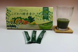 ホコニコのこだわり酵素青汁は、国産の大麦若葉、ケール、明日葉、桑の葉をベースに、たっぷりの139種類の野菜や果物、酵素が生きている多穀麴を配合した栄養たっぷりの酵素青汁です。
